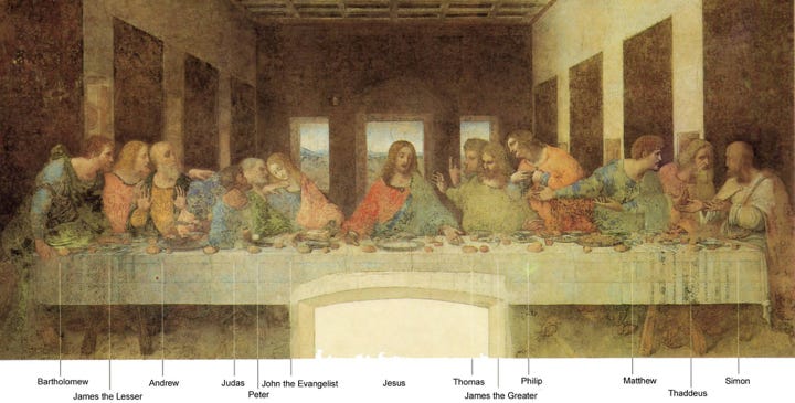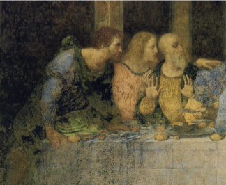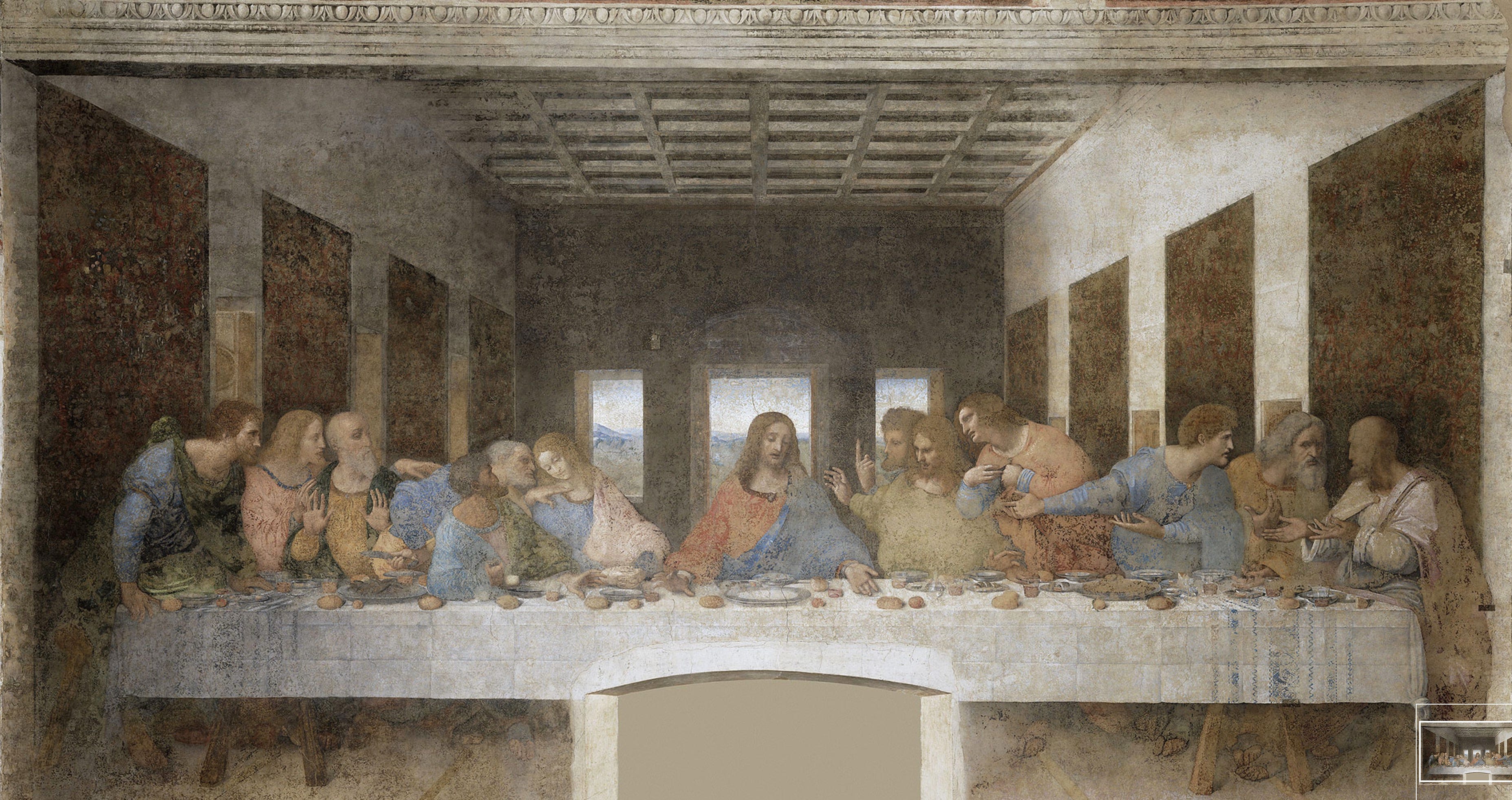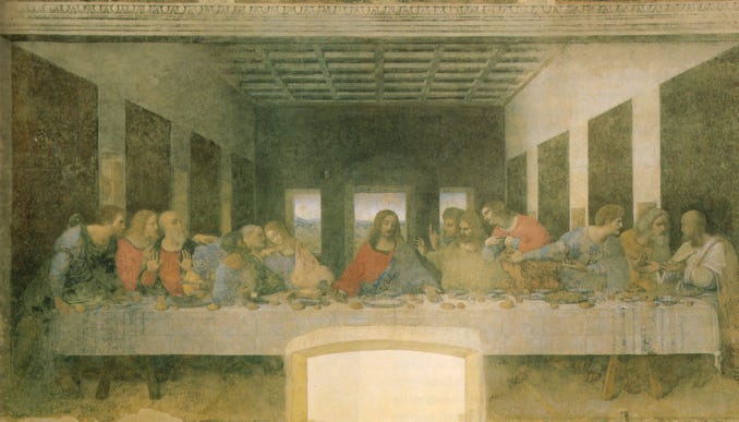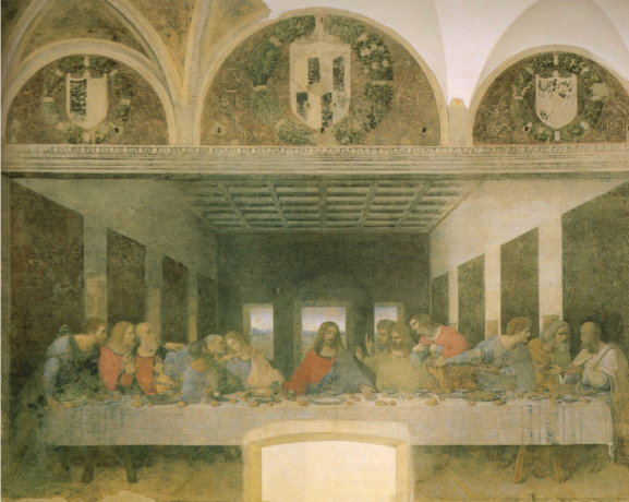 Leonardo’s great innovation is his use of solid and void, the repetition of threes and fours, and a new way of placing the apostles at table.